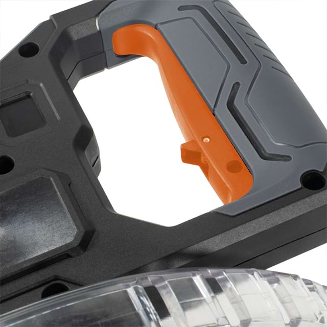 Safety Features: Equipped with a transparent blade guard and an easy-to-reach trigger lock for added safety during operation.