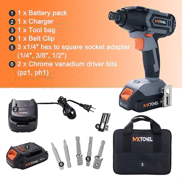 20V Cordless Impact Driver is an indispensable tool for professionals and DIYers seeking a powerful and versatile impact driver. Its cordless design, high-torque and ergonomic features make it perfect for a variety of tasks. With a limited lifetime warranty and durable construction, the MXTOVEL 20V is built to deliver reliable performance. Experience the convenience and power of the MXTOVEL 20V Cordless Impact Driver for all your driving needs.